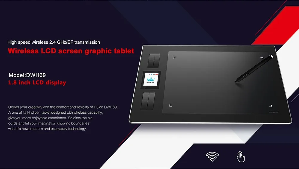 New Huion DWH69 Genuine Wireless Graphics Tablet Drawing Tablets Professional Signature Tablets Kids Painting Pen Tablet Black Ship from RU