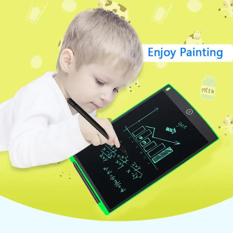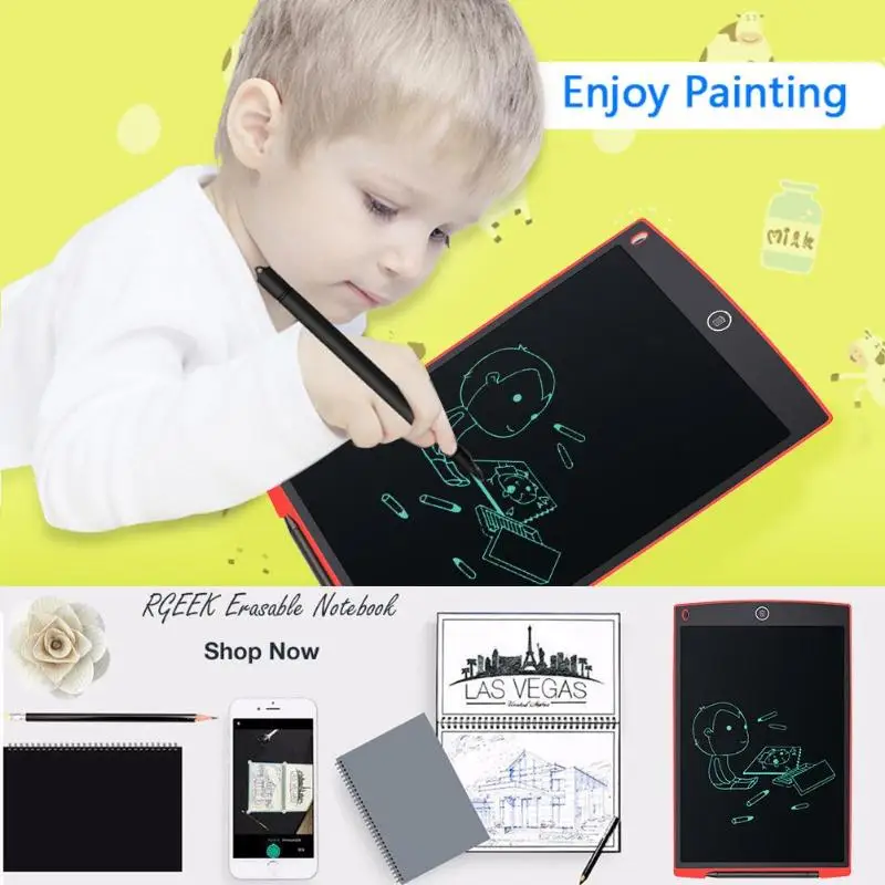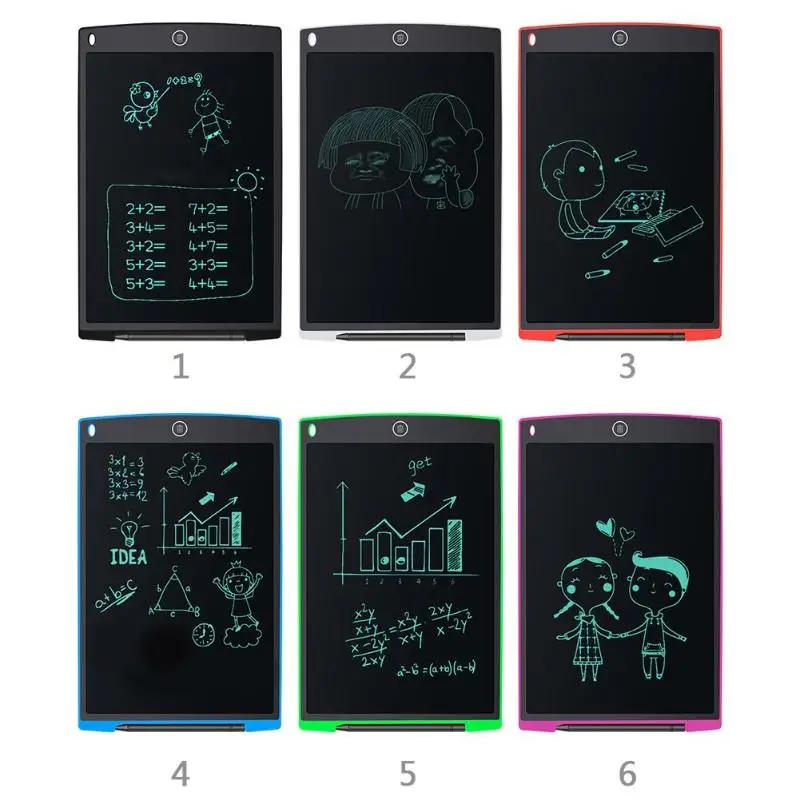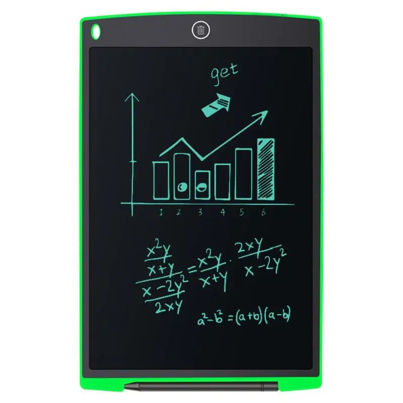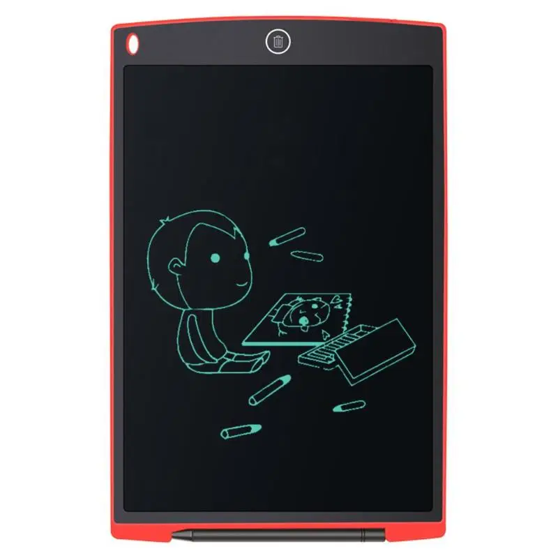 | 12in Digital LCD Writing Drawing Tablet Graffiti Board Handwriting Notepad Features: 1. Pressure-sensitive LCD writing surface makes your writing or drawing appear without any delay. 2. Write or draw with the included plastic pen or any other suitable instrument, even by your finger. 3. Easy operation and high efficiency, erase your drawing just by a touch of the erase button. 4. Ultra-slim and compact design, easy to carry and can be easily slided into your briefcase, backpack, or other bag. 5. Lightweight and portable, perfect for school, office, home use or other use. 6. Built-in replaceable button cell, long battery life up to 2 years, you don't necessarily worry about power cut. Applications: 1. Paperless: for business people, designers, engineers, teachers, students and doctors, etc. useful and environmental-friendly. 2. Love your family enjoy your life: as a family message board to deliver your love to your family, can be placed on the table and desk. 3. Good helper for students: class notes, drafts, and scientific equations to solve mathematical problems. 4. To win at the beginning: easy to cultivate children's writing, calculus, painting abilities, learn with fun. 5. Unspoken word: light and easy to carry, and can be recycled, can let deaf people communicate easier. Specifications: Material: ABS Power supply: built-in button cell Battery capacity: 75mAh Voltage: 3V Standard current: 0.1mA Colour: A(black), B(white), C(red), D(blue), E(green), F(rose red) Screen size: 23.6 x 16.8cm/ 9.29 x 6.61in (L x W) Item size: 28 x 18.5 x 0.48cm/ 11 x 7.28 x 0.19in (L x W x H) Item weight: 185g/6.52oz Package size: 28.5 x 19 x 0.8cm/ 11.22 x 7.48 x 0.31in (L x W x H) Package weight: 220g/7.76oz Notes: 1. There may be slight size deviations due to manual measurement, different measuring methods and tools. 2. The picture may not reflect the actual color of the item because of different photographing light, angle and display monitor. 1 x Digital LCD Handwriting Board 1 x Plastic Handwriting Pen